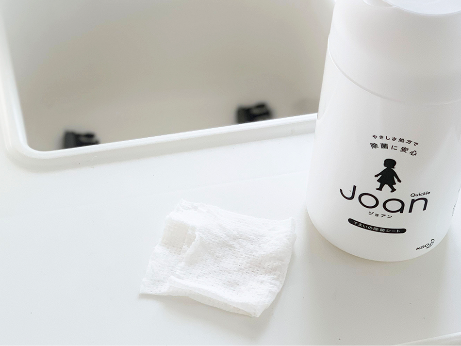 子どもと公園で遊んだり、家のウッドデッキで遊んだりするので、手の汚れが気になります。そんなときに「Joan」のシートタイプなら、パパッとキレイにできるので大助かり! 食べこぼしで汚れた床もふけますし、1本で済ませられるのが時短にもなり、ありがたいです。