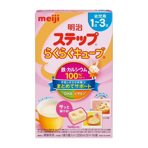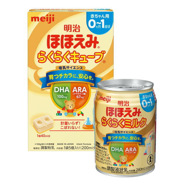 赤ちゃんの発育を考え、一つ一つの栄養成分を母乳に近づけたミルク。らくらくキューブは、個包装で長期保存でき、持ち歩きにも便利。