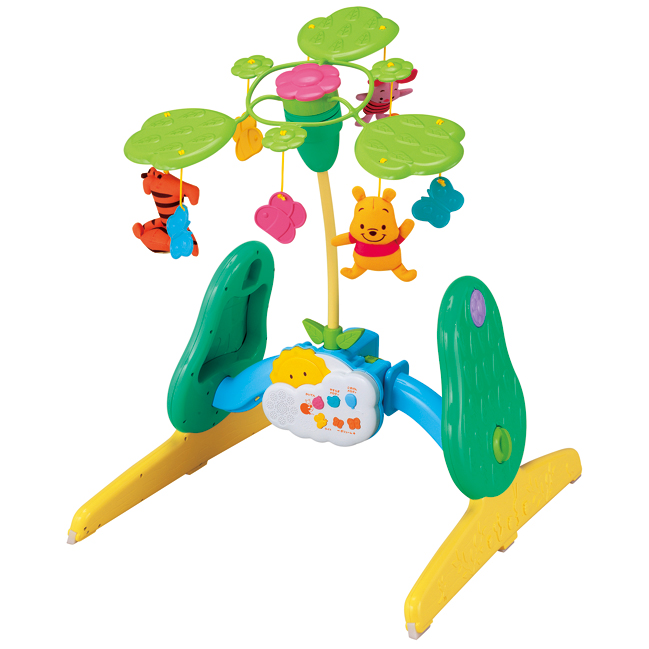 赤ちゃんがジャンプするたびにメロディーが流れたり、ライトが光ります。360度回転できるチェアのまわりには12個のおもちゃが。(首すわり〜12kg以下まで)