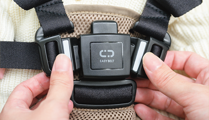 左右のベルトを中央のバックルに添えるだけでピタッと誘導してくれるマグネット式の“イージーベルト”を採用。装着がスムーズなので、赤ちゃんの乗せ降ろしがストレスなく行えます。