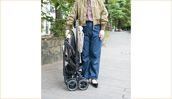 赤ちゃんを抱っこしたまま、たたんだり、広げたり、持ち運んだりすることも。片手で開閉しやすいか、たたんだときの持ち運びやすさ(サイズ、重さ)、自立の安定感も忘れずに確認を。