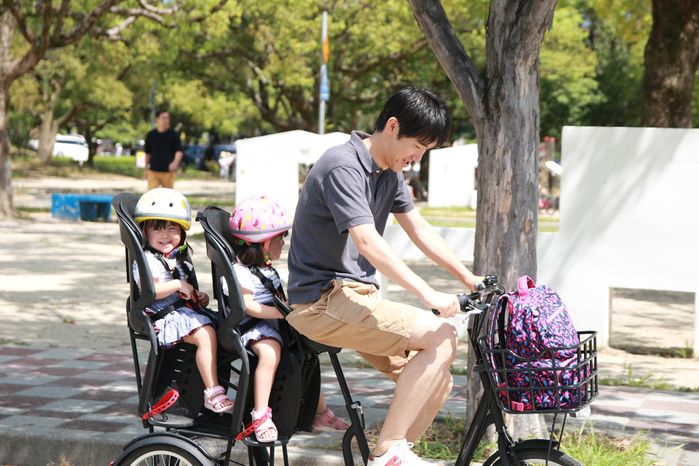 子どもとのちょっとしたお出かけや通院に、子ども乗せ自転車は便利。でも、そんな子ども乗せ自転車での外出がままならない親子がいます。3人乗り自転車のチャイルドシートは、前のシートが4才未満、うしろのシートは6才未満の子どもを乗せられるものが一般的。ところが2人同時に成長する双子の場合、2人を同時に乗せることができなくなってしまいます。そんな問題に直面し、自ら「双子が乗れる自転車」を作ってしまったのが、株式会社ふたごじてんしゃの代表・中原美智子さんです。