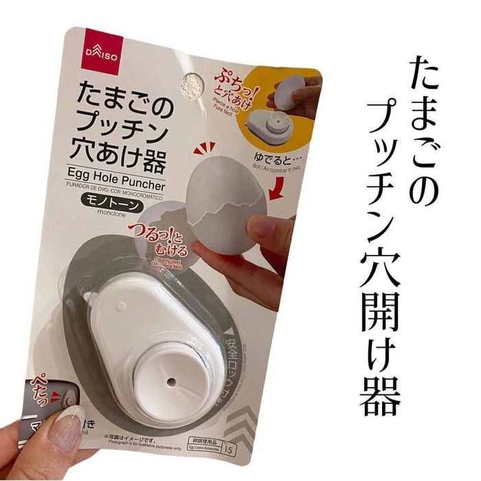 みやびさんがダイソーで購入したのは、たまごのプッチン穴あけ器。ゆで卵の殻って剥くときにうまくはがれなくて白身がボロボロになっちゃうことってありますよね。でもこのアイテムで生卵のお尻に穴をあけてからゆで卵を作ると、卵の殻がつるんっと綺麗に剥けるんだそう。
