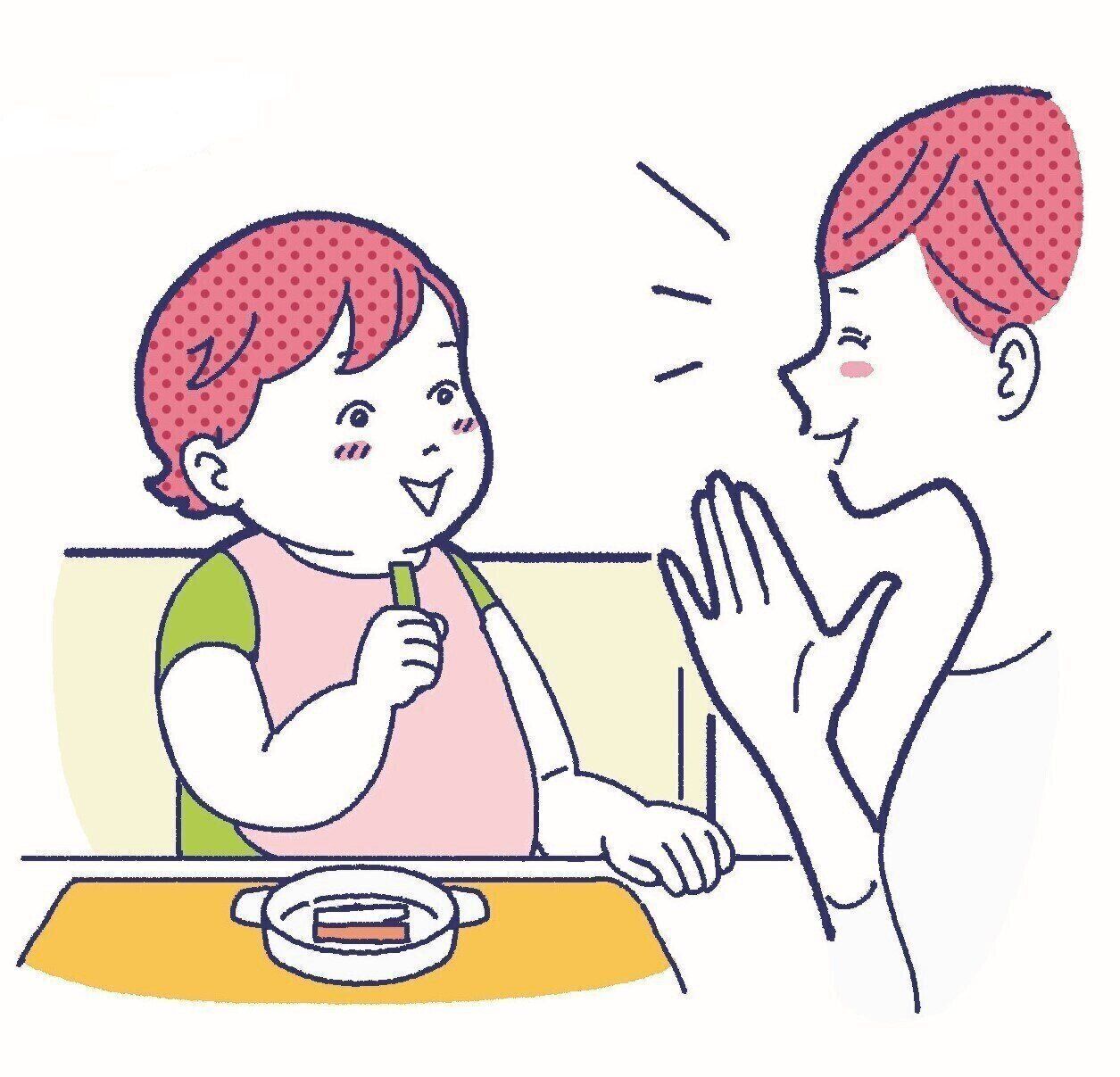 赤ちゃんが自分で食べ物を持てたら、ほめてやる気をアップさせましょう。練習は10分程度を目安にするか、飽きてしまったら切り上げましょう。
