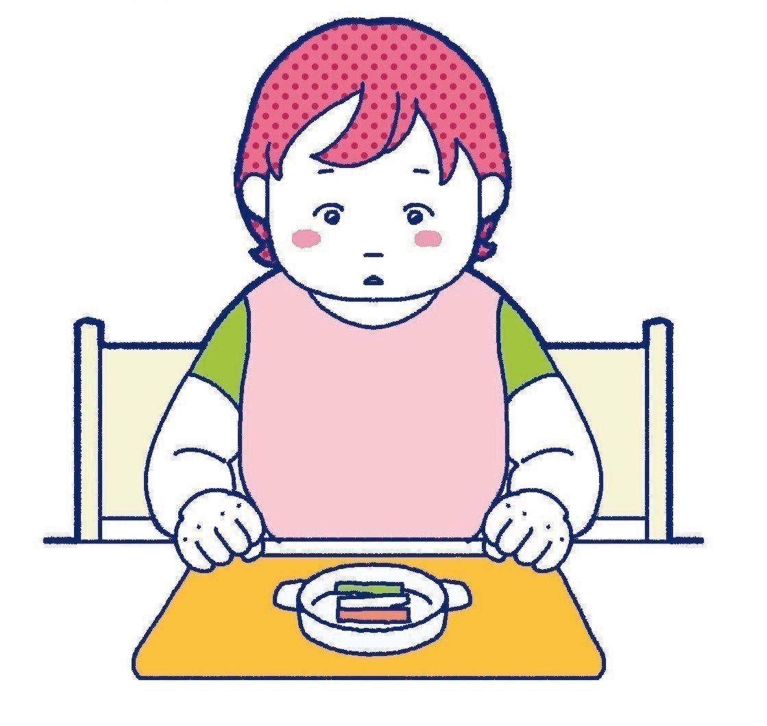 スティック状に切ってやわらかくゆでた野菜など、手づかみで食べやすい形状の食べ物を用意します。