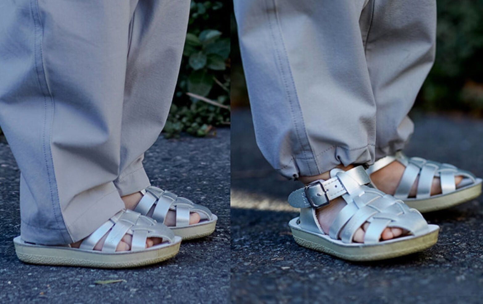 ズボンの裾にゴムが入っているので、季節やシーンによってゴムを絞ることができます。見た目の印象が変わるのもうれしい!
