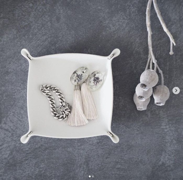 maariiさんはこちらのフェイクレザートレーを購入。見た目もとってもオシャレで高見えするアイテムですね。小物がパッと置けて便利とのこと。とても100均の商品には思えません!お気に入りのアクセなどを入れるのにもピッタリですね。