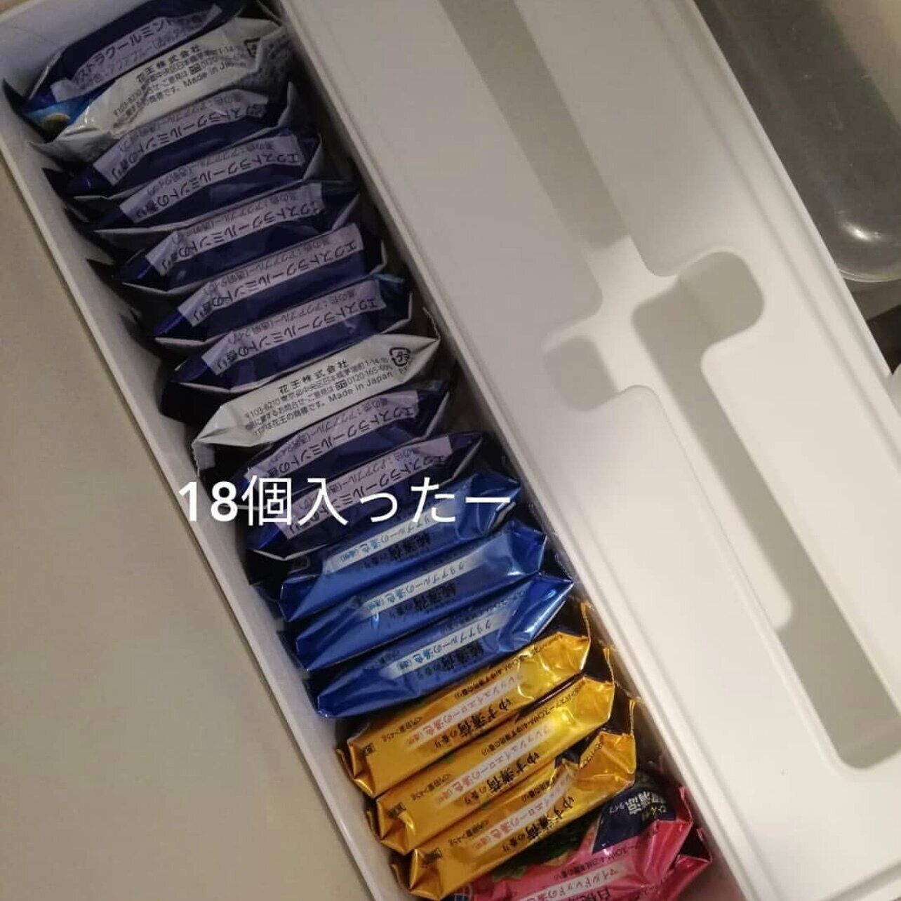 よいこさんが見つけたセリアのシンデレラフィットは、フタ付きケース(トール)でふりかけの収納。お子さん向けの個包装されたキャラクター柄のふりかけって、開封するとバラバラになって整理に困りますよね。これならコンパクトに収納できて、高見えも叶うそうです。
