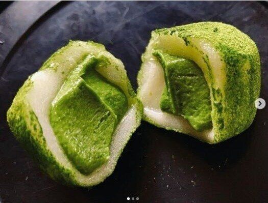 山茶猫さんが購入したのは抹茶入りの生チョコが中に入っているという伊藤久右衛門監修の「宇治抹茶ちょこ餅」。最初は甘さを感じ、後から濃厚さと渋みがあり美味しかったそうです。3個入って172円(税込)というお値段も嬉しいですね。