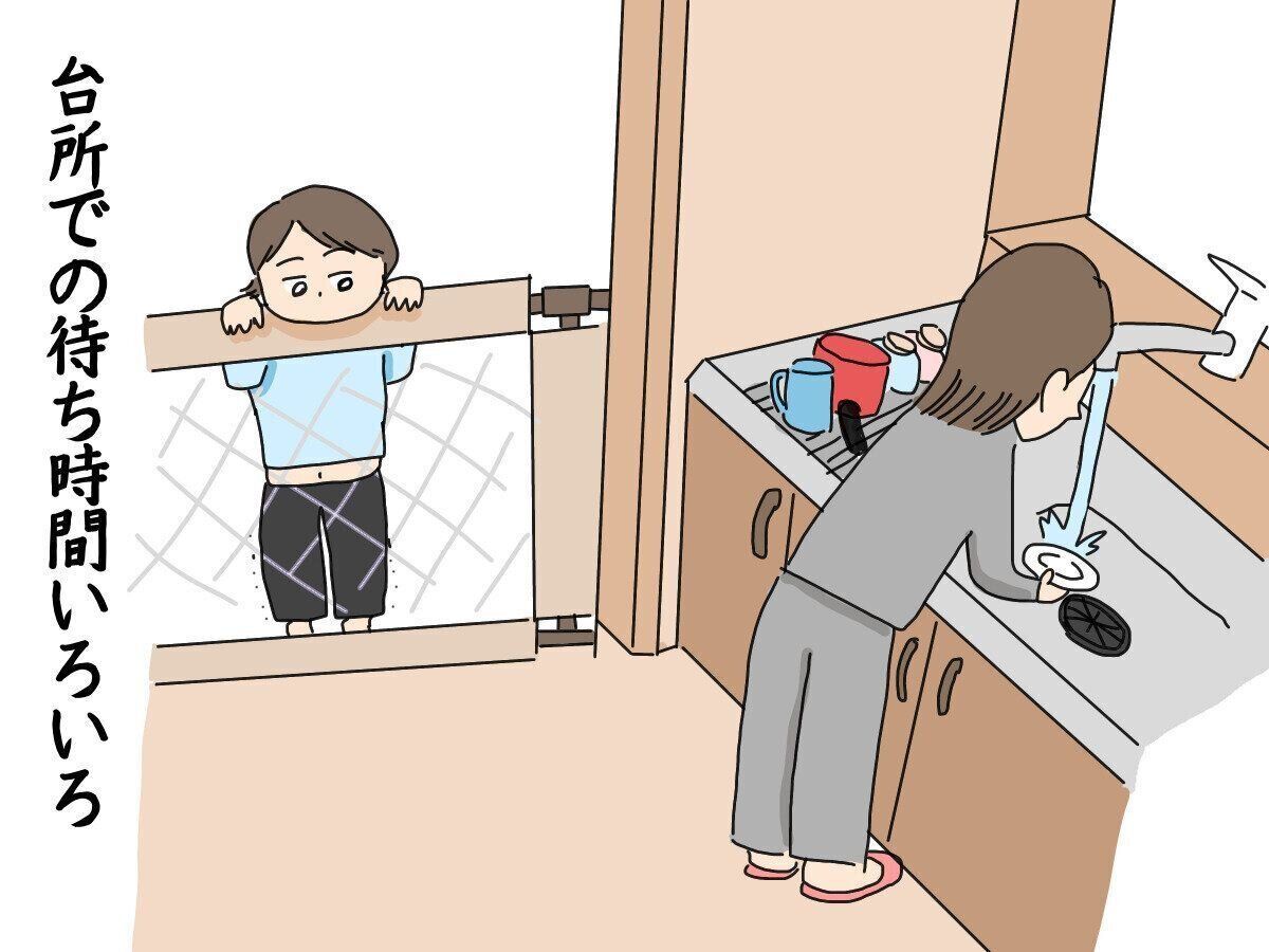 私がキッチンに立って料理や皿洗いをしているとき、1人で遊んでいればいいのに母の後をついてくる息子。