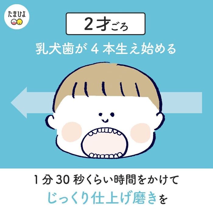 このころから、むし歯菌を減らす効果があるキシリトールの入ったタブレットを与え始めても。仕上げ磨き後のごほうびとしてタブレットを活用してもOKです。