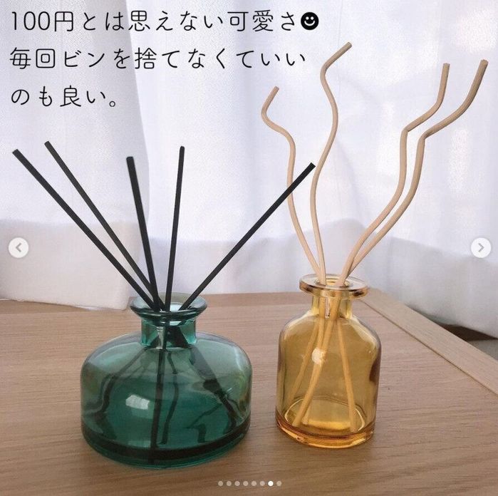 chihoさんはこちらのフレグランス用ボトルとスティック(各税込110円)を購入。憧れだった「香りがある暮らし」をはじめたんだそう。くねくねしているフォルムが可愛いとお気に入りの様子。見た目もとってもオシャレですね!