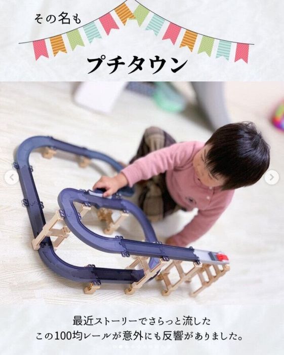 めもさんはレールおもちゃのプチタウンを購入。優しい色合いでオシャレな見た目。ナチュラルインテリアやモノトーンなど、おうちの雰囲気にも自然と馴染みそうですよね。同じくプチタウンのミニカーと一緒に遊ぶのがおすすめなんだとか。大人も子どもも一緒に楽しめそうです!