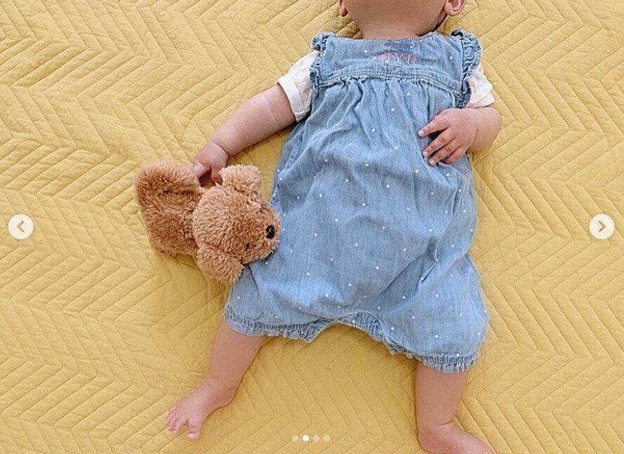 miyu mamaさんはこちらの水玉がキュートなショートオールを購入。なんと娘さんの名前の刺繍入り!GAPでは店舗限定で名入れ刺繍サービスを行っているようですよ。まさに世界に一つだけのオリジナルデザイン!とってもお似合いですね。