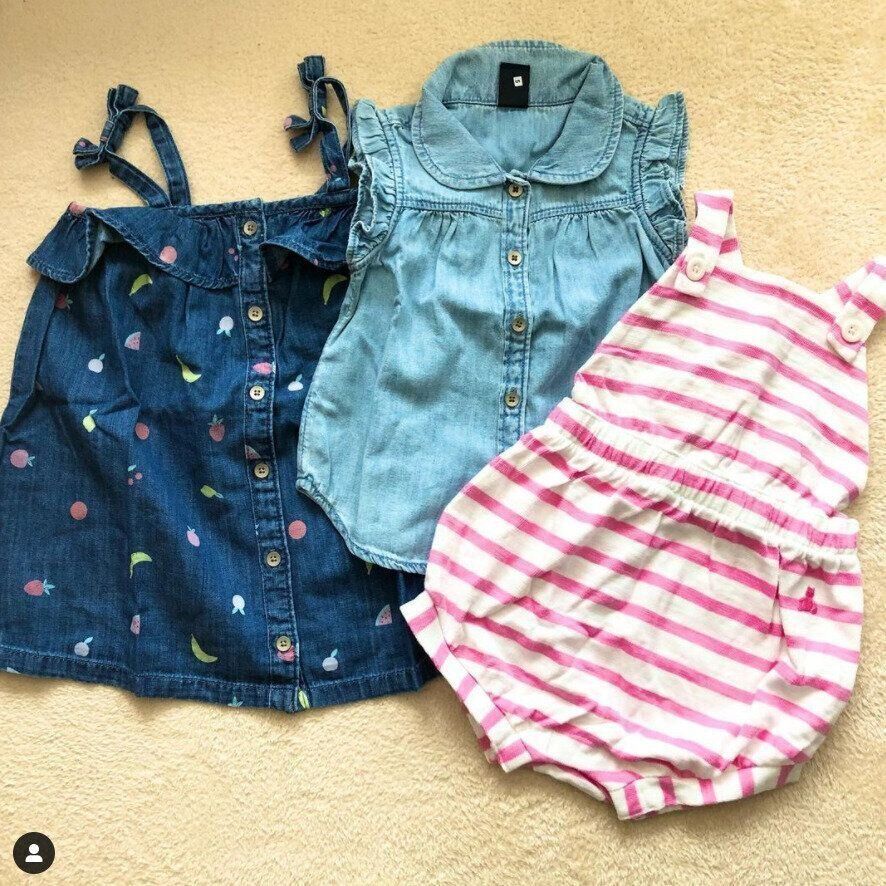 sa_00114さんはこちらのデニムパンツ、ワンピース、襟付きボディシャツを購入。デニムのデザインがとってもキュートで今すぐにでも着せたいくらい!ボディシャツも襟付きで上品な印象に。デニムなら親子・家族コーデもしやすいですよね。