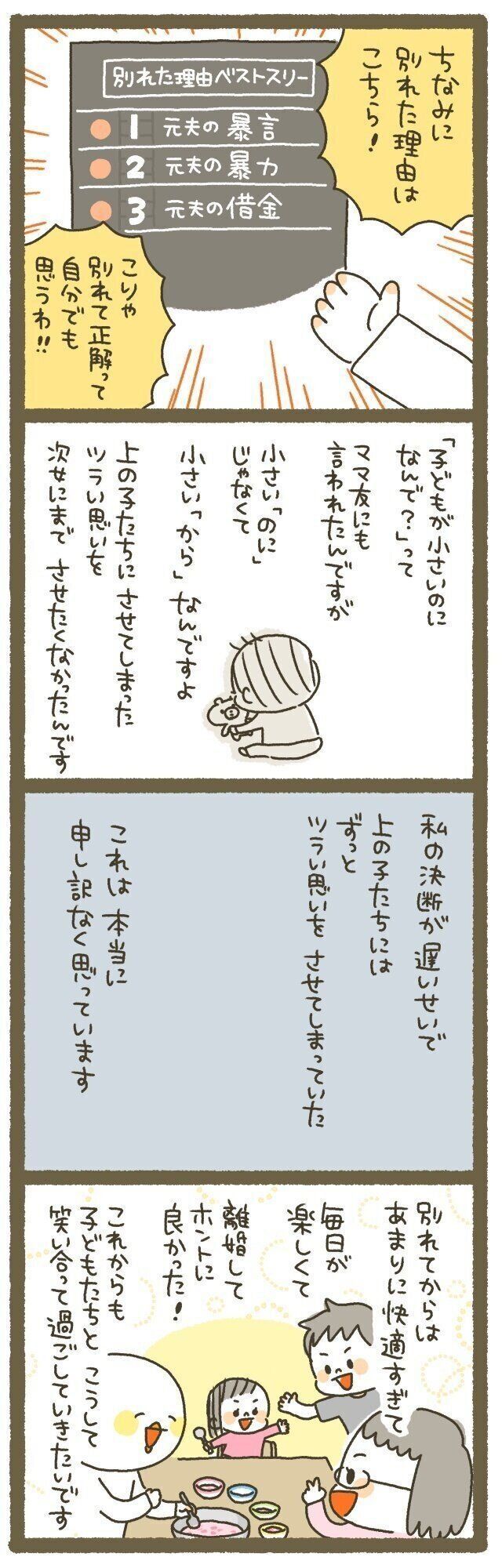 離婚直後はね、どうして別れようと思ったかとか、別れるためにどういう準備をしたかなども漫画にしようと思ってたんですよ。