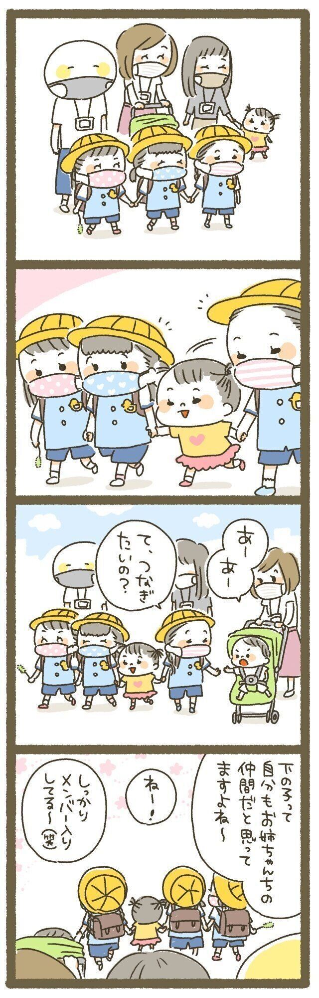 はたから見ると1人だけちっちゃいのがいて、その違和感というかアンバランスさが面白くて可愛いのですが、当の本人はさも当たり前のようにそこにいるんですよね(笑)