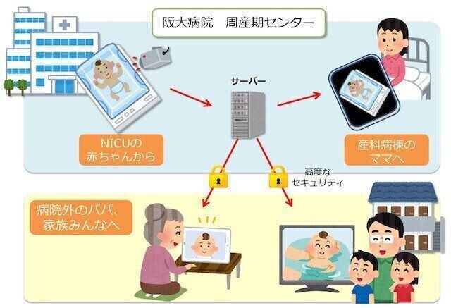 新生児期は母子の愛着形成を促すとても大事な時期といわれます。そこで阪大病院では、赤ちゃんと家族とのかかわりの一助となるオンライン面会システムを開発しました。同院はシステム開発資金をクラウドファンディングで募るプロジェクトを2020年9月から実施。2カ月半で3000万円以上を集める成功を収め、現在2021年5月末の本格運用に向けて準備を進めています。