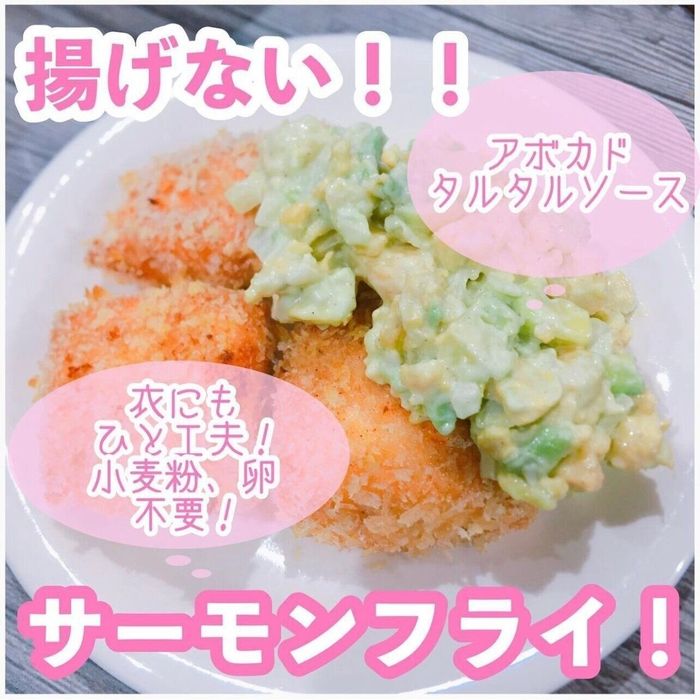 フライを食べたいけれど揚げ物に抵抗があるならこちらがおすすめ。nanaさんは揚げ油を使わずにコストコのサーモンでフライを作ったそうですよ。マヨネーズを塗ったらパン粉をまぶしてオーブンで焼けば完成。小麦粉→卵の工程が必要ないので、時短・手間省略にもなるのが嬉しいですね。