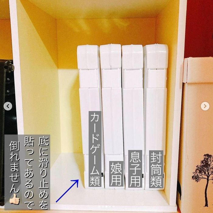 4-Dailyさんは、2人のお子さんの学校書類を100均のファイルケースに入れて保管しているそう。ファイルごとに分類しているのでわかりやすいですね。ファイルに入れておくだけなので整理も楽々!忘れてはいけない書類はバインダーに挟んでよく見る場所にかけておくそう。