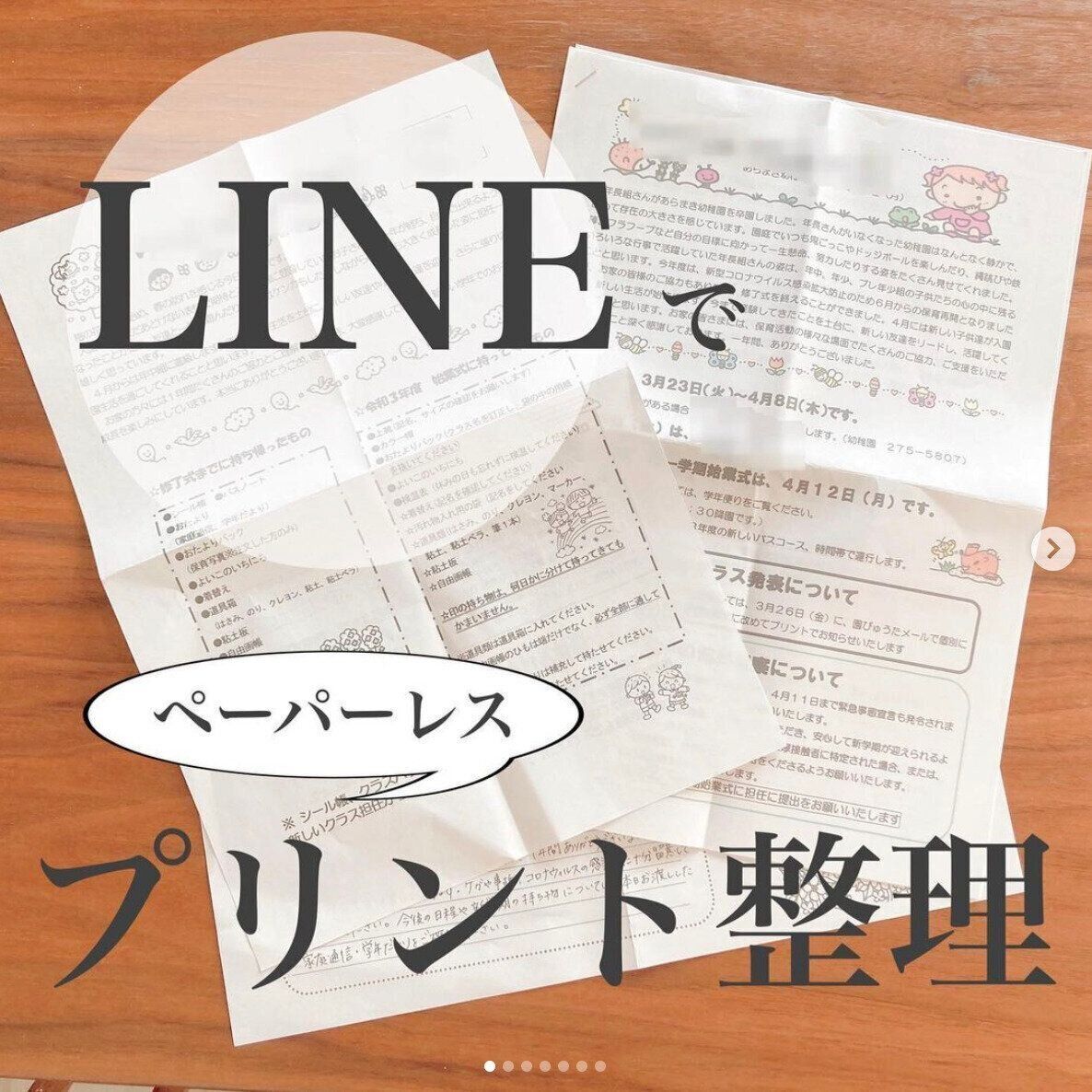 ちえこさんは、LINEを使ったペーパーレスなプリント整理を実践しているそう。紙で残さなくて良いプリントは、写真を撮って自分だけのLINEグループに投稿しておくのだとか。見たい時にすぐチェックできてとても便利なんだそうです。収納スペースもとらないのでおうちもスッキリ片付きそうですね。