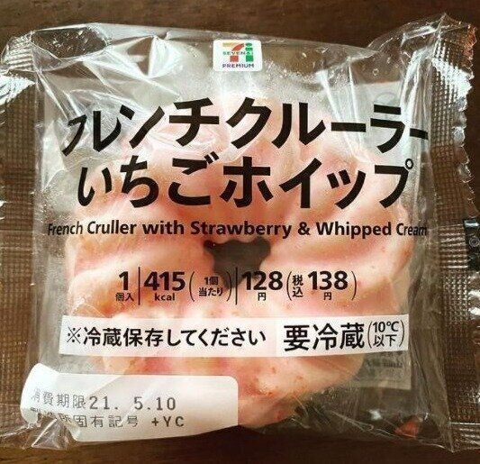 ワコさんが購入したのは、セブンプレミアムの「フレンチクルーラー いちごホイップ」。甘酸っぱさや甘い香りがほんのりと感じられ、優しい美味しさだったそうです。いちごチョコやいちごホイップが美味しそう!
