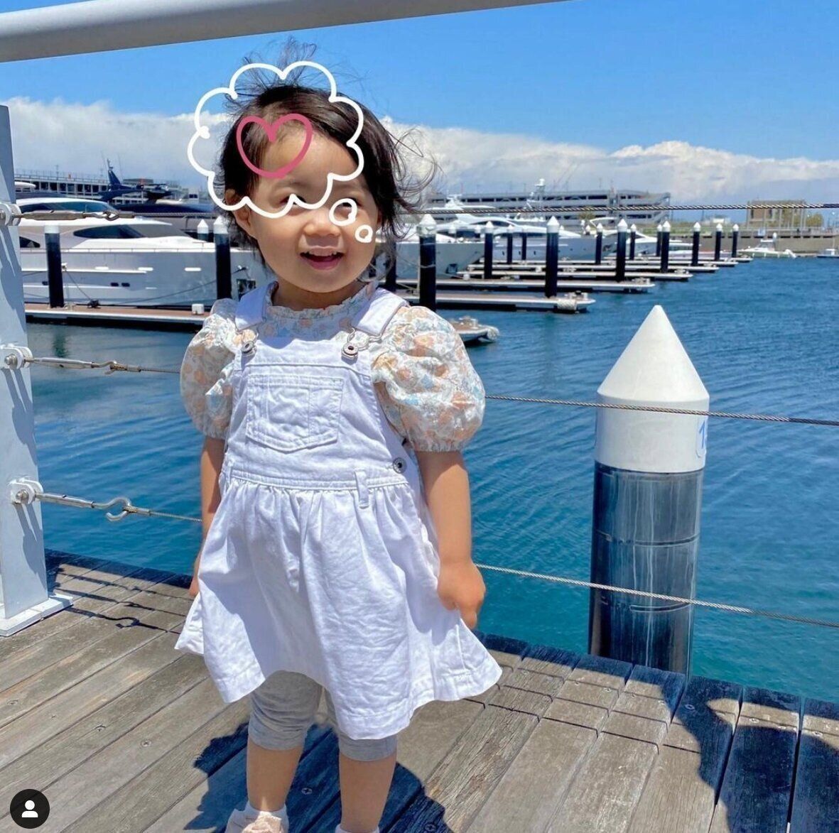 あゆみにぃさんがお出かけでセレクトしたのはこちらのジャンパースカートとレギンス。レギンスを履くことで、アクティブに遊べますよね!ホワイトカラーのジャンパースカートも着回せそうです♪