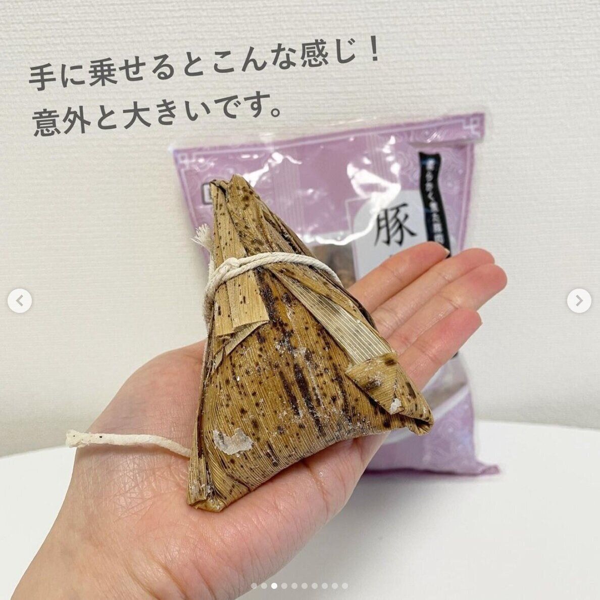 こちらはもち米と豚肉、野菜を竹の皮で包んだ豚ちまきです。電子レンジ・蒸し器・ボイルからお好みの調理法が選べるようです。Mimiさんは一番調理が簡単な電子レンジでの調理を選んだそうで、500wで3分加熱するとのこと。