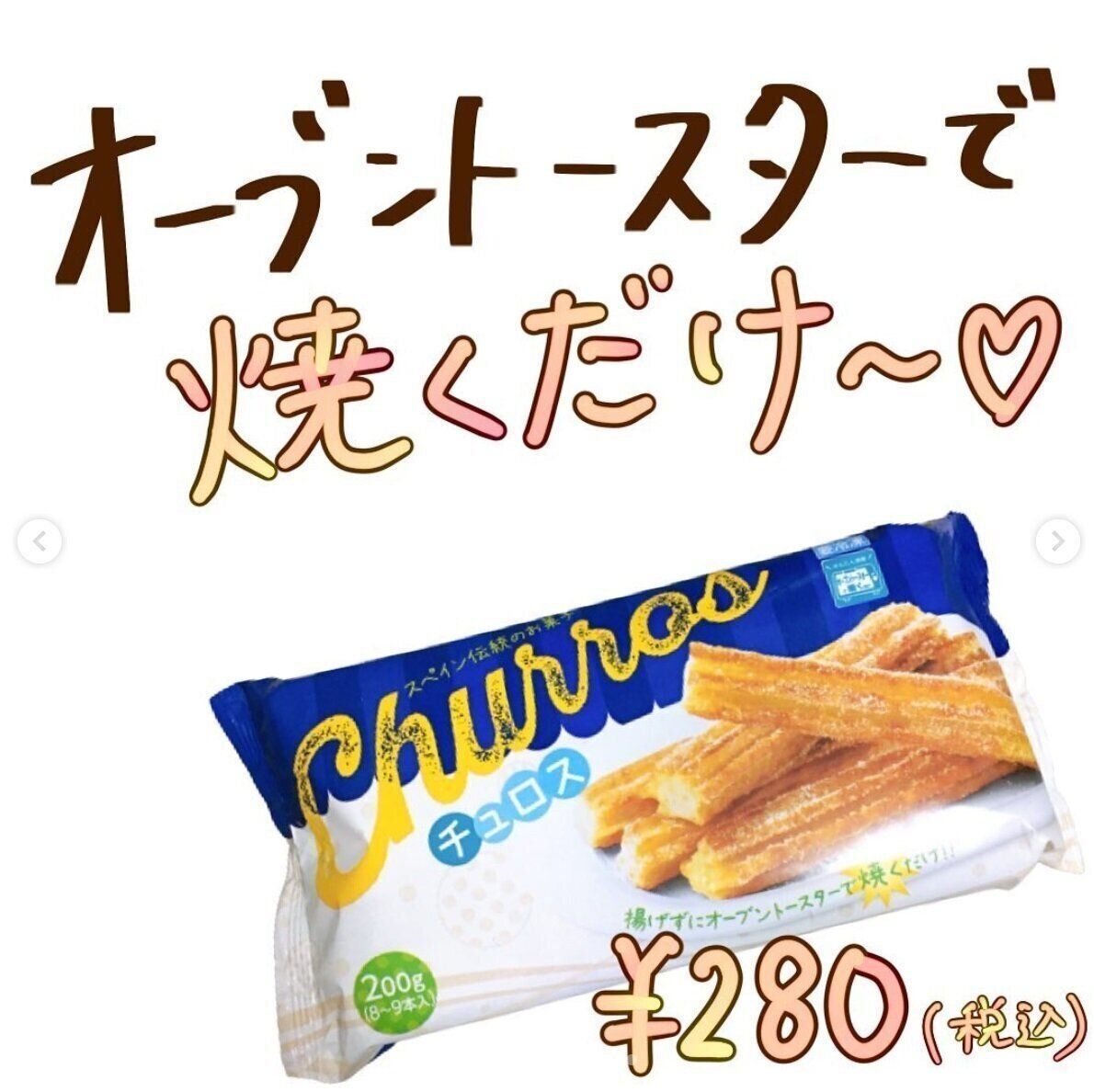 こちらは本場スペイン産の味が楽しめる冷凍チュロスです。1本あたり約39円だそうで、揚げずにオーブントースターで焼くだけで食べられるんだとか!砂糖やきな粉、ココアパウダーをかけてアレンジするのもオススメとのこと。