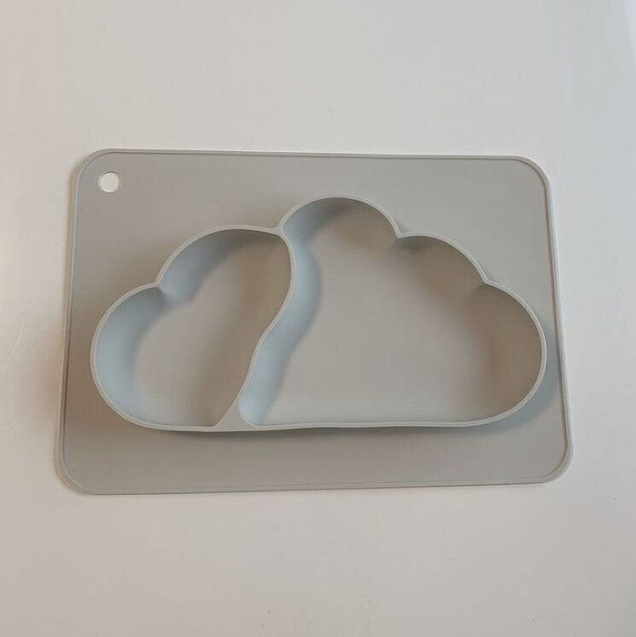 m.mamaさんが購入したのは、3COINSで気になっていたという「シリコーンプレート」。形も色も好みなんだそう♪ シンプルな色合いと、雲形が可愛いですよね!シリコーンなら、ズレにくいので手づかみ食べにも良さそう。