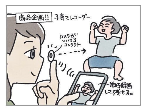 ドライブレコーダーならぬ、子育てレコーダーみたいなのがあればいいのになあと思います。とっても近未来な感じですが、カメラがついているコンタクトレンズをつけておくと、目に映る風景が常時録画されていて、残したいところを残しておける。技術以上に、セキュリティとかいろんな問題はありそうですけどね・・・!