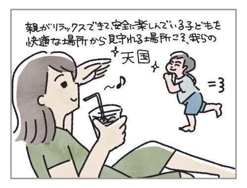 自分がゆっくりとリラックスしながら楽しめて、安全に楽しんでいる子どもを、快適な場所から見守れる環境こそ、我らの天国・・・!ハハのさけび#100で、全ての公園にカフェを併設してほしいと書きましたが、心からそう思っています。さらに欲望のままに語らせていただくと、あらゆるニーズを満たす場所があったらもう最高だなと思うわけです。
