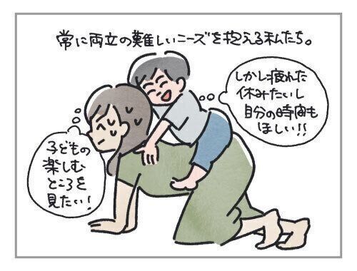 常に、両立の難しいニーズを抱える、私たち。子どものことは大好きなので、当然、子どもの楽しむところを見たい!でも人間なので、疲れたら休みたいし、自分の時間も欲しいわけです・・・。