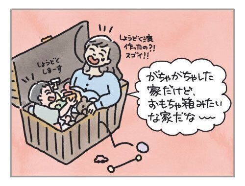 全然キレイじゃない、がちゃがちゃとした家。子どもが生まれる前とは、全然違う家。散らかっているけど、子どもを喜ばせるオモチャに溢れていて・・・なんだかオモチャ箱みたいな家だなーとか思います。