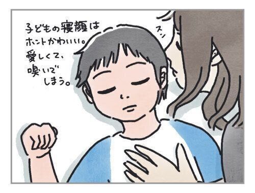 ぐっすりと寝た子どもの寝顔は、本当に愛らしいものですよね。ついつい愛しい子どもの匂いを嗅いでしまうのは、親あるあるらしいです(笑)。別に良い匂いがするわけでもなく、お風呂に入ったはずなのに既に汗をかいていて、臭かったりするんですけどね・・・。
