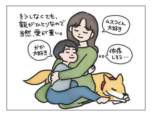 以前何かの本で読んだのですが、ひとり親だとついつい父親役も担ってしまい、厳しくなりがちなので、特に小さいうちは意識的に甘やかした方がいいのだそうです。確かに忙しい毎日の中では、「◯◯しなさい」となってしまいがち。なるべく命に別状のないことは許したり、スキンシップを多めにしたりと、意識的にするようにしています。