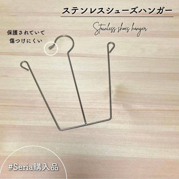 こちらはセリアのステンレスシューズハンガーです。スニーカーやお子さんが幼稚園や学校で使う上履きなどを干すのに使いたいですね。mate - まて - さんは、ベランダ用のサンダル収納のために購入したそうですよ。