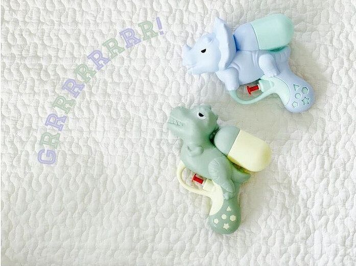 こちらは、のんさんが購入した恐竜型の水鉄砲です。可愛すぎて即買いしたんだとか。くすんだブルーとグリーンが、たまらなく可愛い…!恐竜好きのキッズは大喜び間違いなしですね。