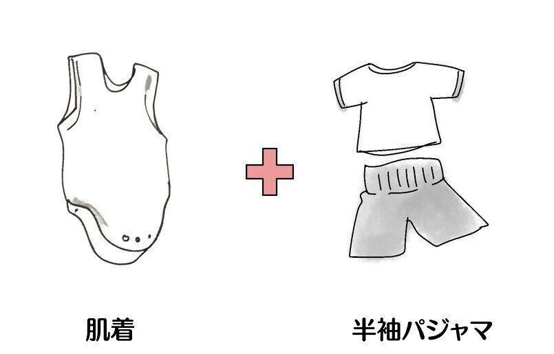 肌着+半袖パジャマ(上下つながったタイプでもOK)