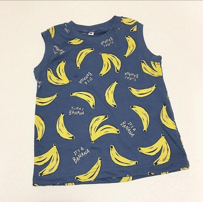 こちらは、ぴーかーぶーさんが購入したバナナ柄のトップスです。男の子でも女の子でも◎。大きめを着ると、ワンピースみたいで可愛いとのこと。とてもいい色合いで、お気に入りだそうです♪