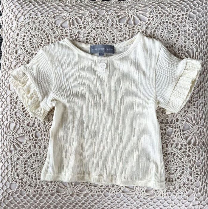 ここママさんは可愛らしい白のトップスを2枚購入。こちらのアイテムは以前から狙っていたようで、お安くなっていたのでゲットしたんだとか。綿100%なのも最高!とお気に入りの様子。どんなボトムスとも合いそうですね。