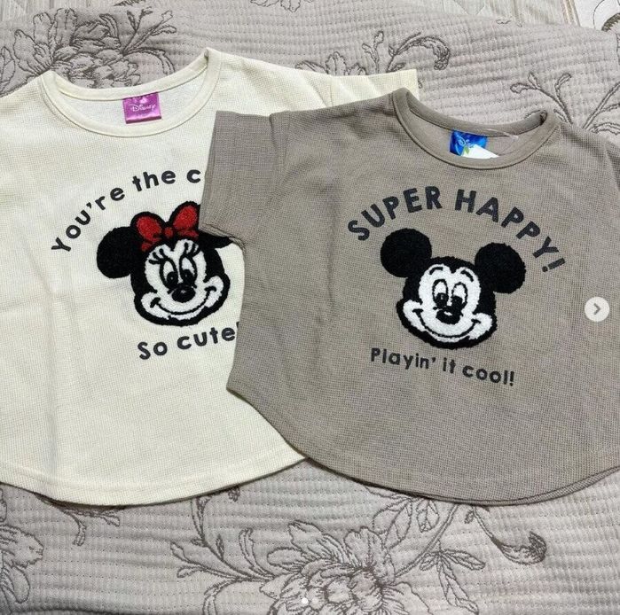 nyankokirakiraさんはこちらのミッキーとミニーTシャツを購入。各979円だったんだとか。スウェット生地のような柔らかい印象で、着心地も良さそうですね。ショート丈なのもオシャレ!ヘビロテ間違いなしなアイテムですね。
