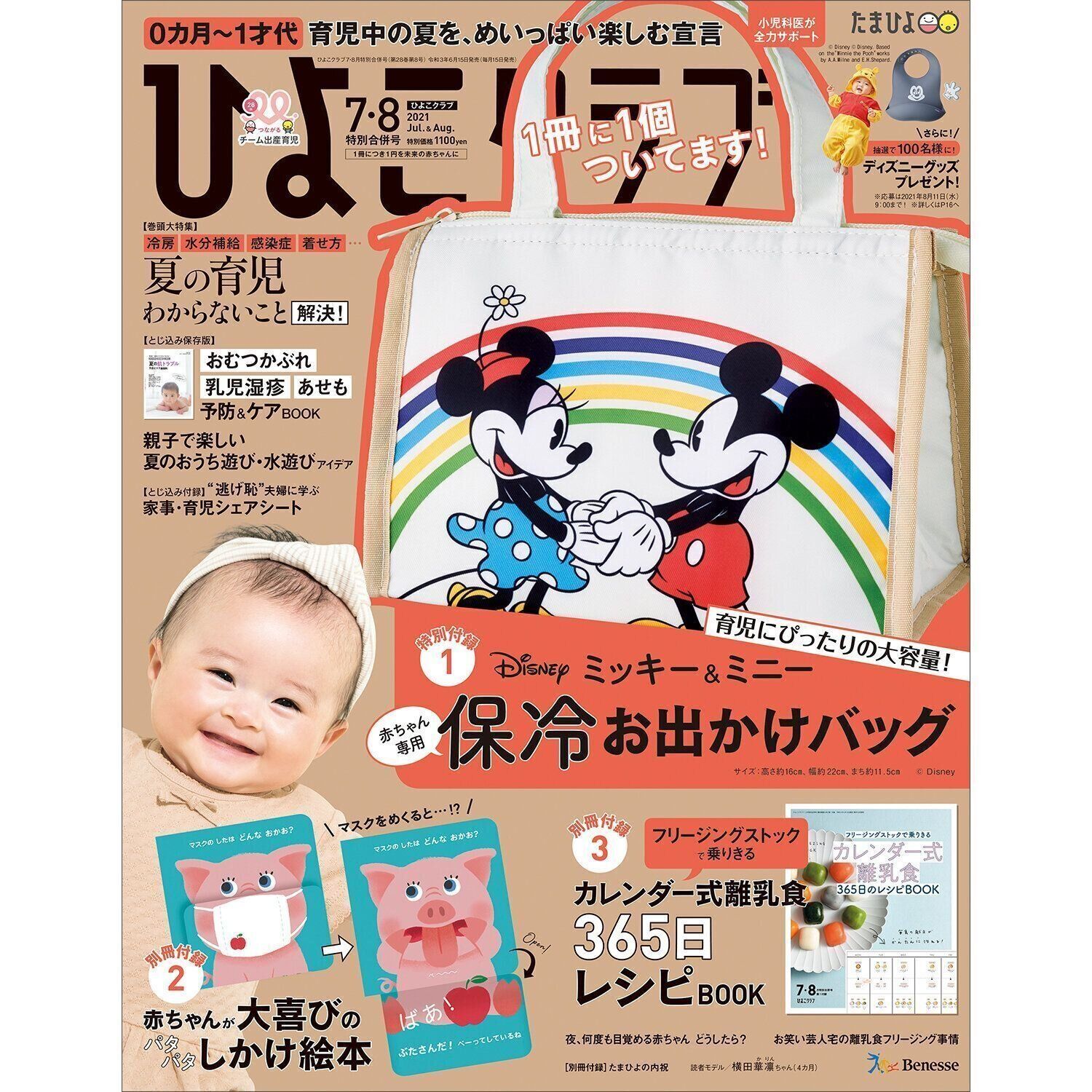 『ひよこクラブ』2021年7・8月合併号には、離乳初期から離乳完了期まで毎日使える、フリージング離乳食のレシピを満載した別冊付録「フリージングストックで乗りきる カレンダー式離乳食 365日のレシピBOOK」がついています。