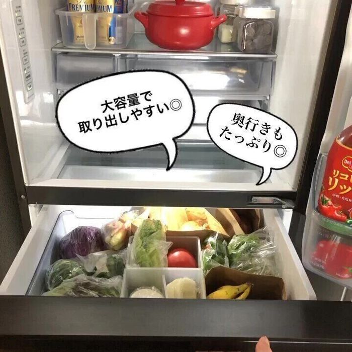 「Delie」生活もそろそろ1年。一番のポイントは、冷蔵庫を開けるたびに、スケルトン状態の野菜室を見渡せるところ。以前は、使いかけの野菜があることを忘れて新しいものを切ったり、同じ野菜を重複買いしてしまっていました。「Delie」にしてから、いつの間にか野菜の整理整頓をする習慣がついたみたいで「あっ!こんな隅っこに使いかけの野菜が!」ということがなくなりました。重複買いもほぼゼロです!