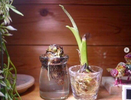 usagi_noさんは里芋をガラスの瓶の中に入れ、水につけてリボベジしています。水につけておくだけで、ずいぶん立派な芽と根が出てきていますね。土に植えても育ちそう!収穫できるほど育つか楽しみですね。