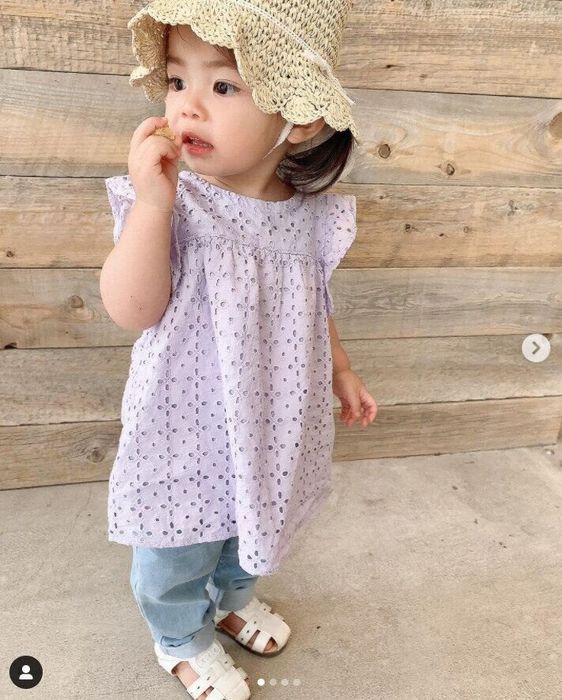 Rina Ishiiさんはこちらの白のレースが付いたトップスを購入。双子のリンクコーデが可愛らしいですね。最近ではお二人ともとても活発で、遊ぶのが上手になってきたんだとか。このお洋服なら動きやすくてこれからも大活躍しそうですね!