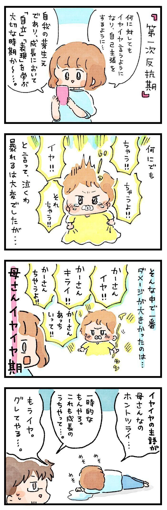 今までのイヤイヤに「かーさんいや!!きらい!!」という発言が加わり、これはかなりこたえました。