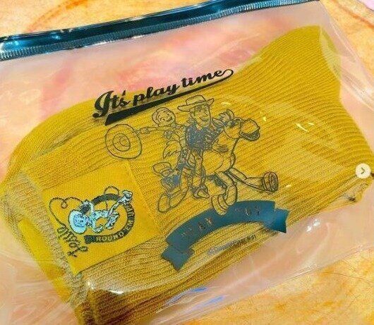 まーさんが購入したのは黄色いジェシーの靴下。ケースに入っているのがまた良いですね。他にも、紺やグレー、カーキなどのカラーがあるようです。330円(税込)というお値段も嬉しい!肌触りも良さそうですね。