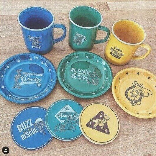 Natsumiさんが購入したのは、トイストーリーやモンスターズインクのマグカップ、プレート、コースターなどです。青、緑、黄色などのカラーがあるようですね。これはおそろいで使いたい!