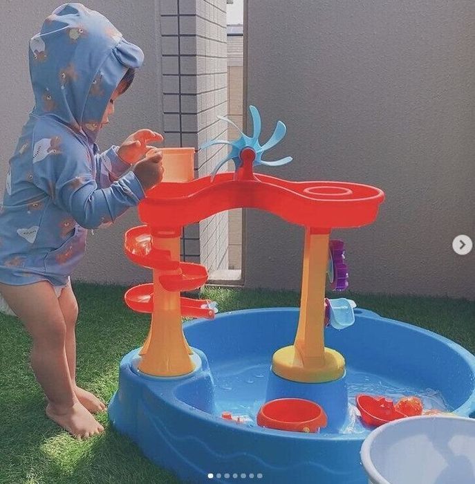 AOmamaさんがGETしたのは、大きなウォーターテーブルです。お友達から誕生日プレゼントにもらったんだとか!ベランダ遊びがとっても充実したそう♪ いろんな仕掛けがあって、楽しそうですね。